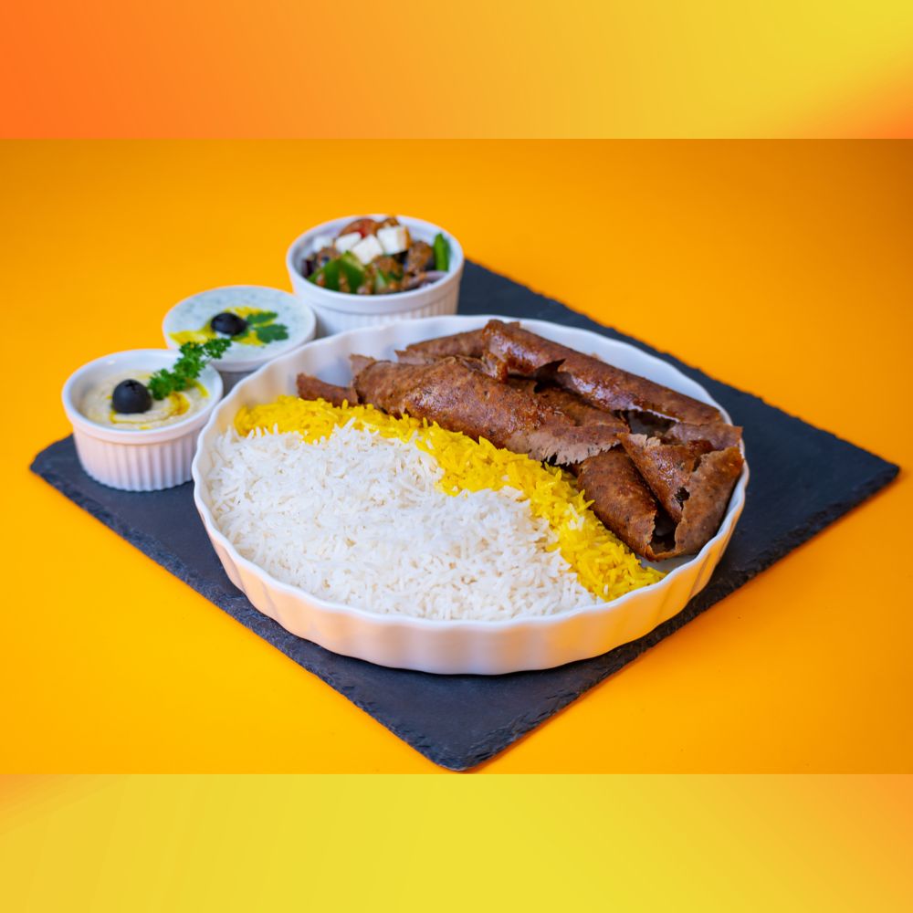 For true donair lovers! Tender, juicy lamb donair served over your choice of fragrant saffron rice or our signature Kabuli Pulao with raisins and carrots. Paired with fresh Greek salad, oven-baked potatoes, creamy hummus, and your choice of delicious sauces. An unforgettable meal with rich, authentic flavour.